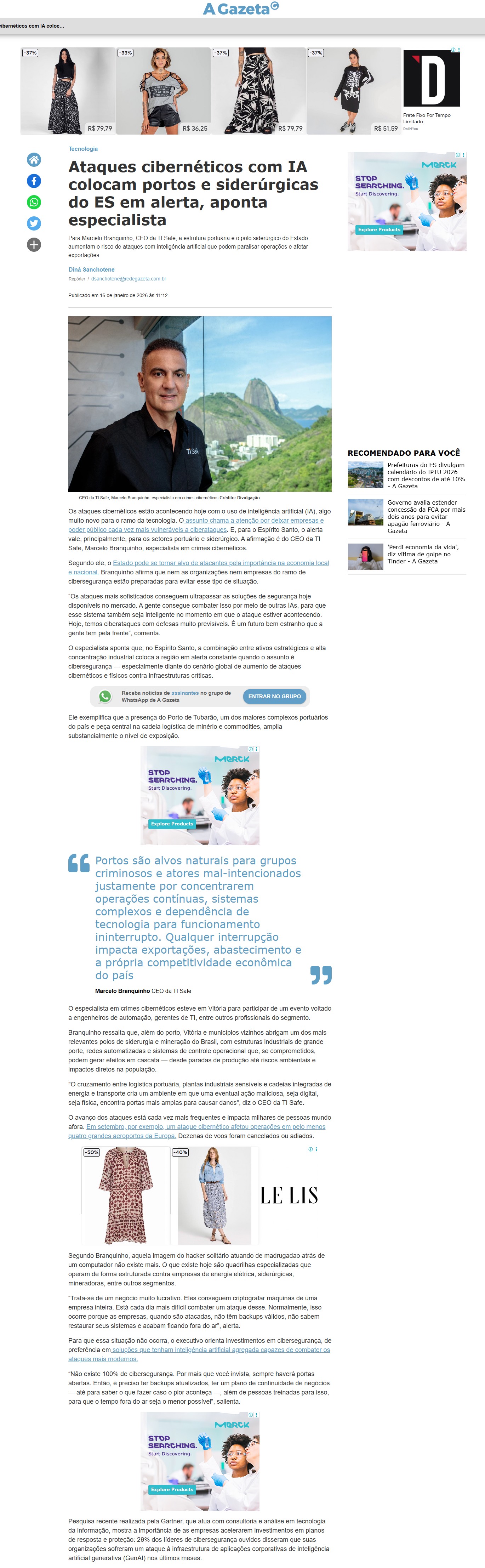 Publicado em https://www.agazeta.com.br/es/economia/ataques-ciberneticos-com-ia-colocam-portos-e-siderurgicas-do-es-em-alerta-aponta-especialista-0126