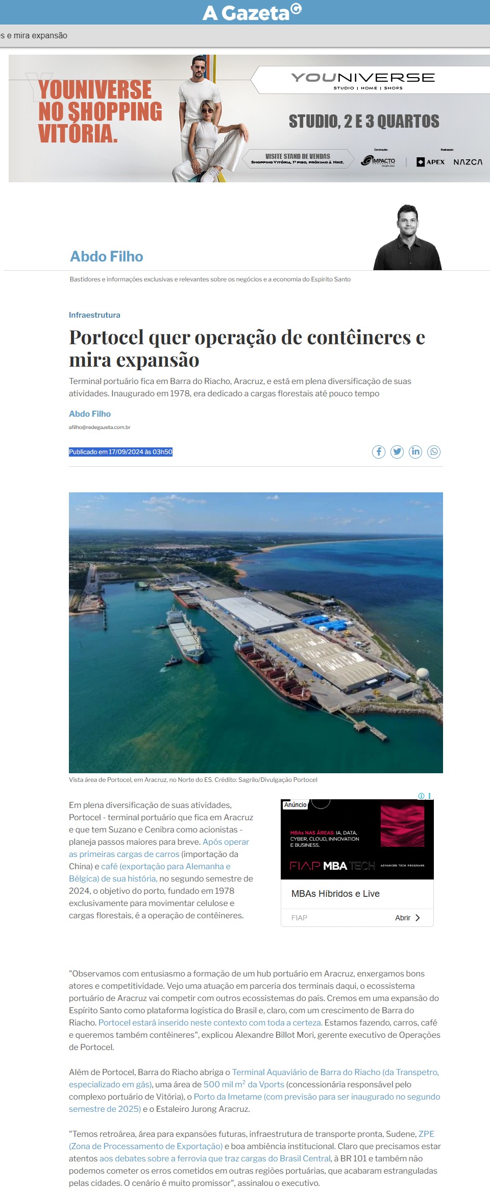 Publicado em https://www.agazeta.com.br/colunas/abdo-filho/portocel-quer-operacao-de-conteineres-e-mira-expansao-0924