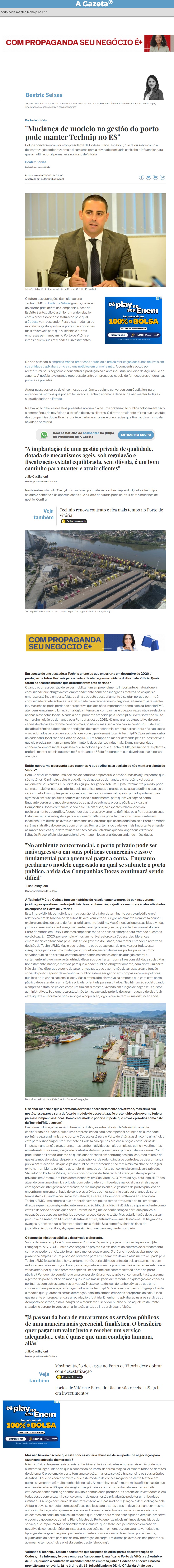 Publicado em https://www.agazeta.com.br/colunas/beatriz-seixas/mudanca-de-modelo-na-gestao-do-porto-pode-manter-technip-no-es-0121